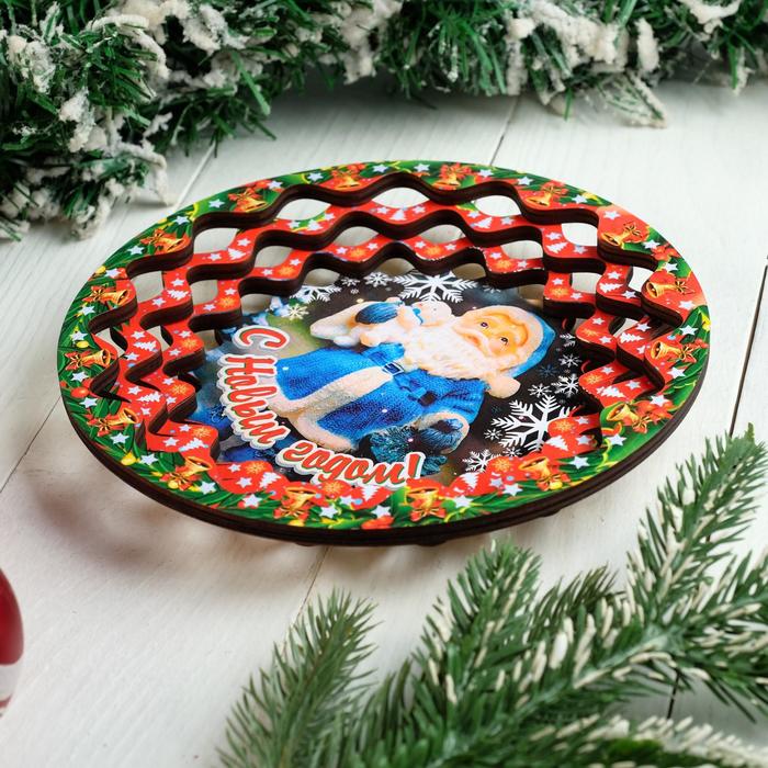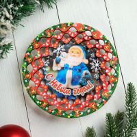 Тарелка сувенирная деревянная "Новогодний. Здравствуй, Дедушка Мороз", цветной
