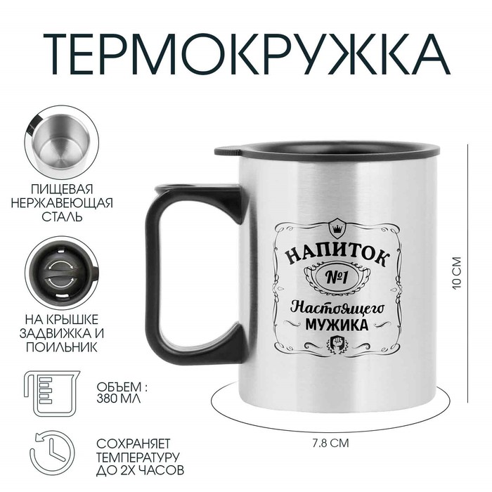 Термокружка, 380 мл, «Напиток настоящего мужика», 10?7.8 см