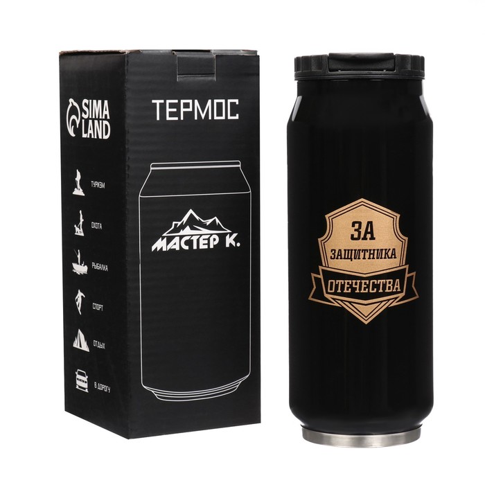 Термокружка, 400 мл, Банка "За защитника отечества", сохраняет тепло 8 ч,7.6х19.3 см