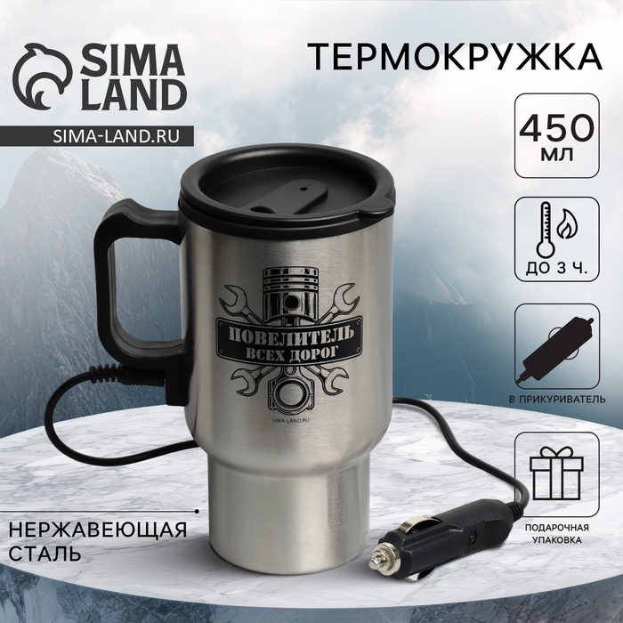 Термокружка с подогревом от прикуривателя «Повелитель всех дорог», 450 мл, сохраняет тепло 3 ч