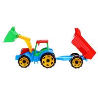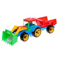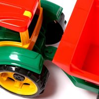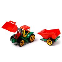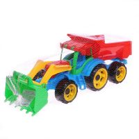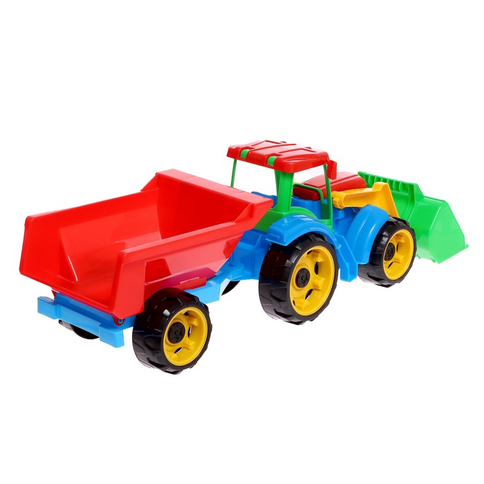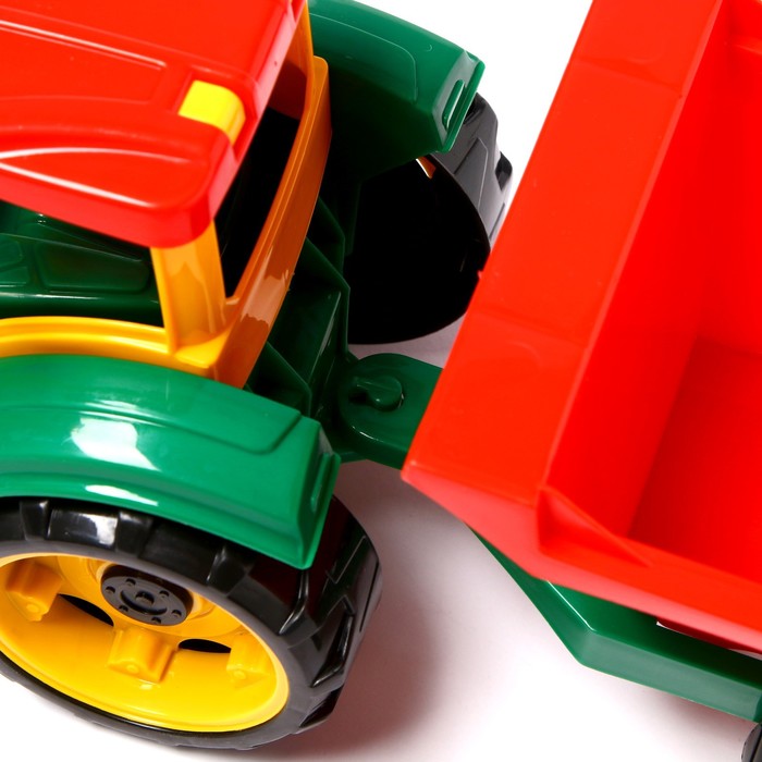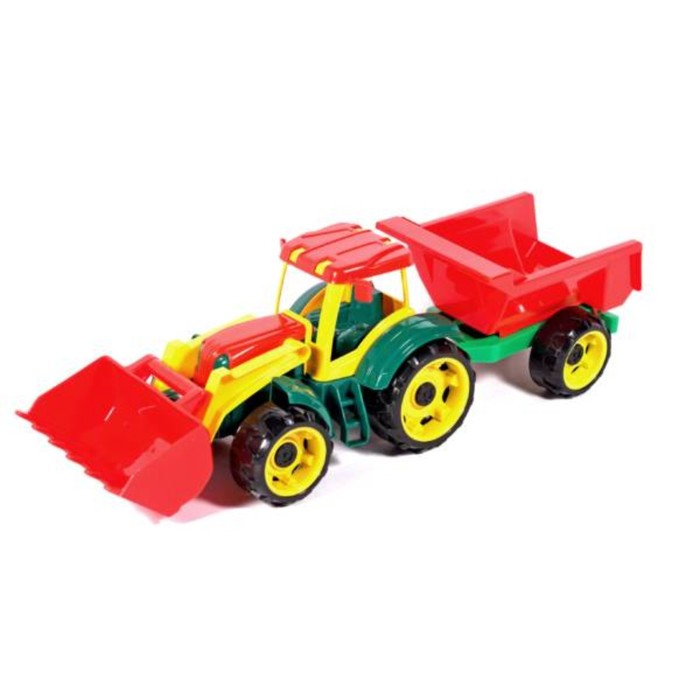 - Комплектация: трактор и прицеп в наборе. Ребёнок может перевозить песок, кубики или другие игрушки, создавая свои первые стройплощадки.