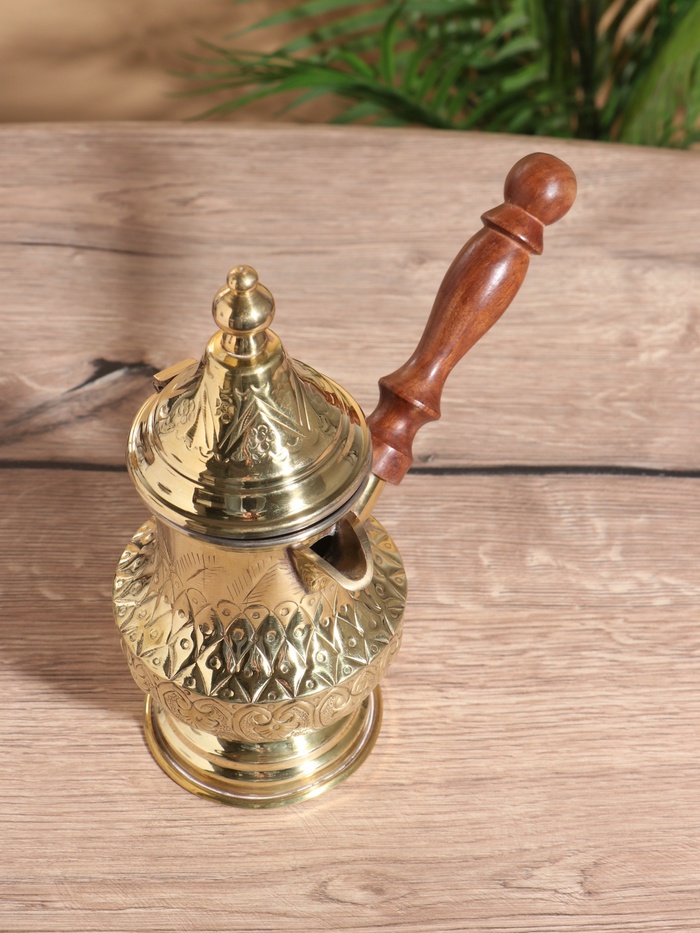 Турка "Волшебная лампа" латунь, с крышкой и деревянной ручкой 350 мл