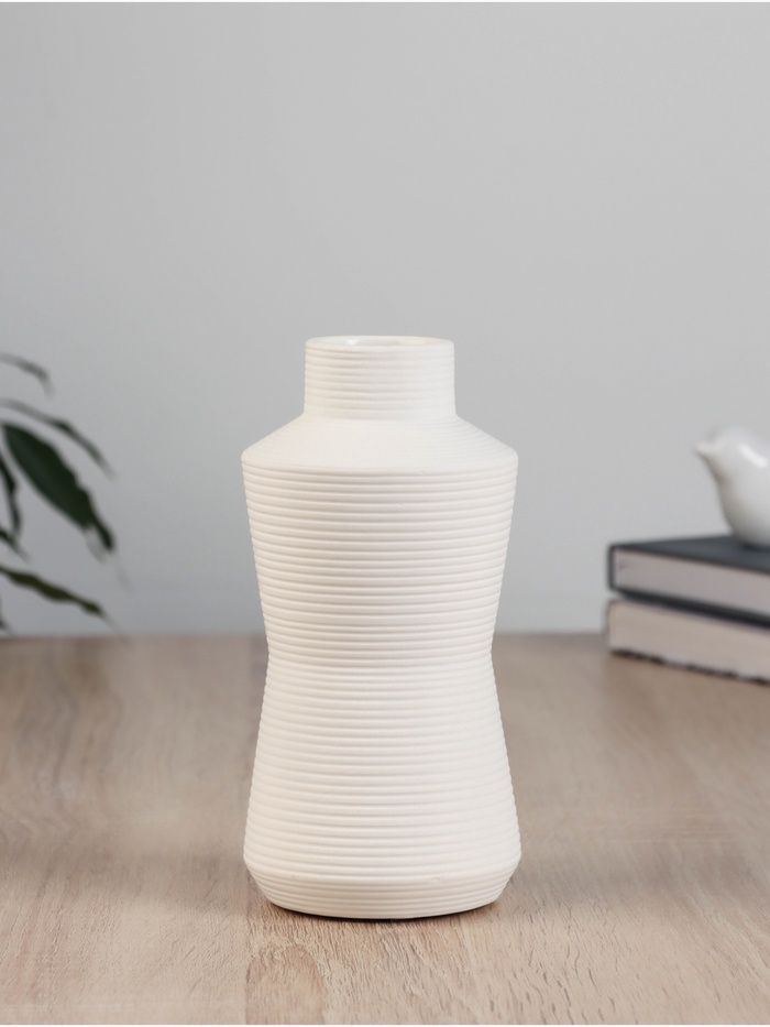 Цвет|Белый;Высота, см|17;Высота, мм|170;Вид вазы|Настольная;Материал|Керамика;Оформление|Рельефные;