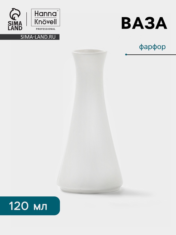 Цвет|Белый;Высота, см|13;Объём, мл|120;Вид вазы|Настольная;Материал|Фарфор;