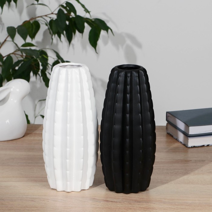 Цвет|Чёрный;Цвет|Белый;Цвет|Серый;Высота, см|25;Высота, мм|250;Вид вазы|Настольная;Материал|Керамика;Оформление|Рельефные;