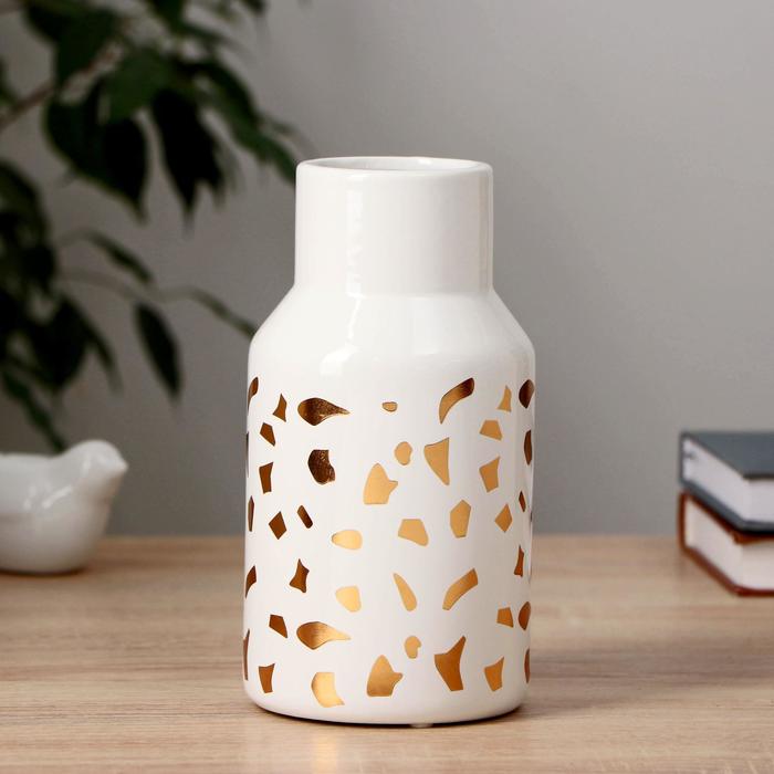 Создайте атмосферу уюта и элегантности в вашем доме! Керамическая белая ваза с золотистым декором – это гармоничное сочетание классики и изящества. Ее минималистичный дизайн и утонченное оформление делают ее идеальным декоративным элементом для любого интерьера.