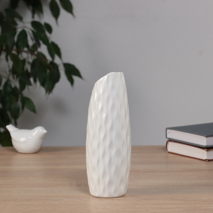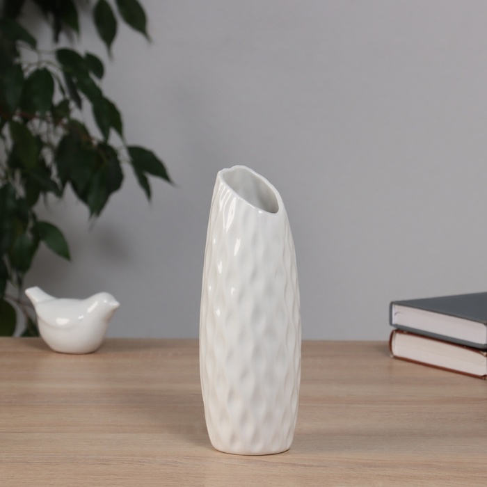 Ваза «Теган», бочка скос, 20.5?6.5 см, керамика, белая