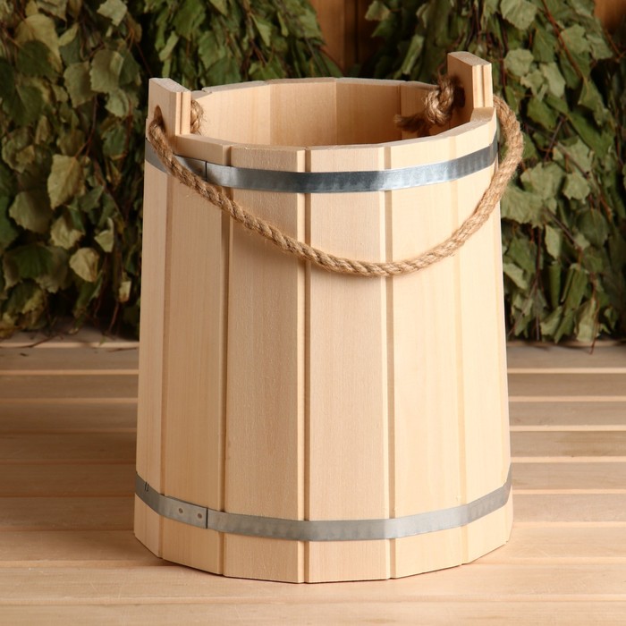 Ведро из липы, 10л, нержавеющий обруч, ручка-веревка, "Добропаровъ"