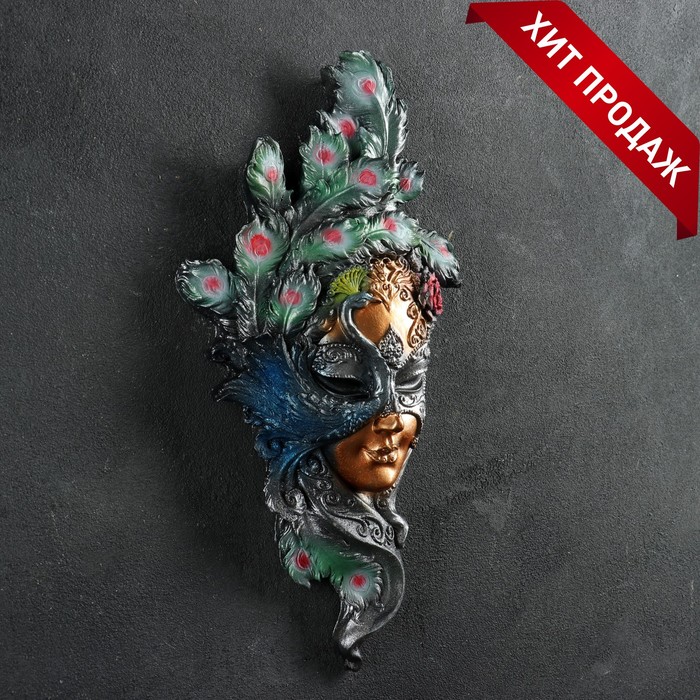 Венецианская маска «Павлин», панно, настенный декор, цветной, 35 см
