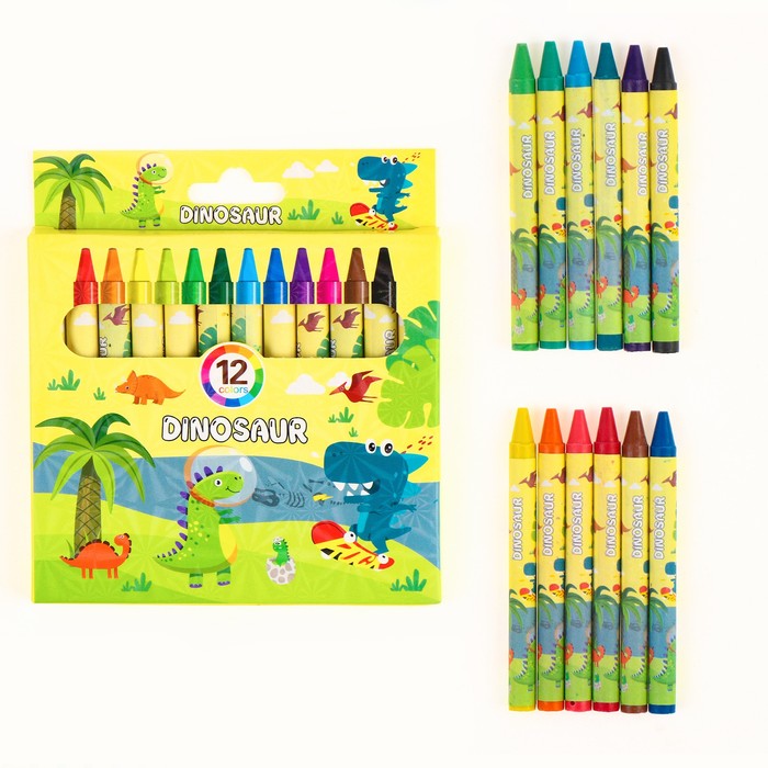 Восковые карандаши «Мир динозавров», набор 12 цветов