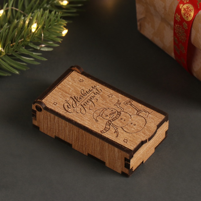 Набор|Нет;Цвет|Бежевый;Форма|Прямоугольная;Длина, см|7;Ширина, см|4;Высота, см|2;Тематика|Новогодняя;Тематика праздника|Новый год;Вид дерева|Фанера;Материал|Дерево;Покрытие|Без покрытия;Вид|По дереву;Особенности шкатулки|Без особенностей;Вид заготовки|Шкатулка;Комплектация набора|Без комплектации;Стиль|Классика;
