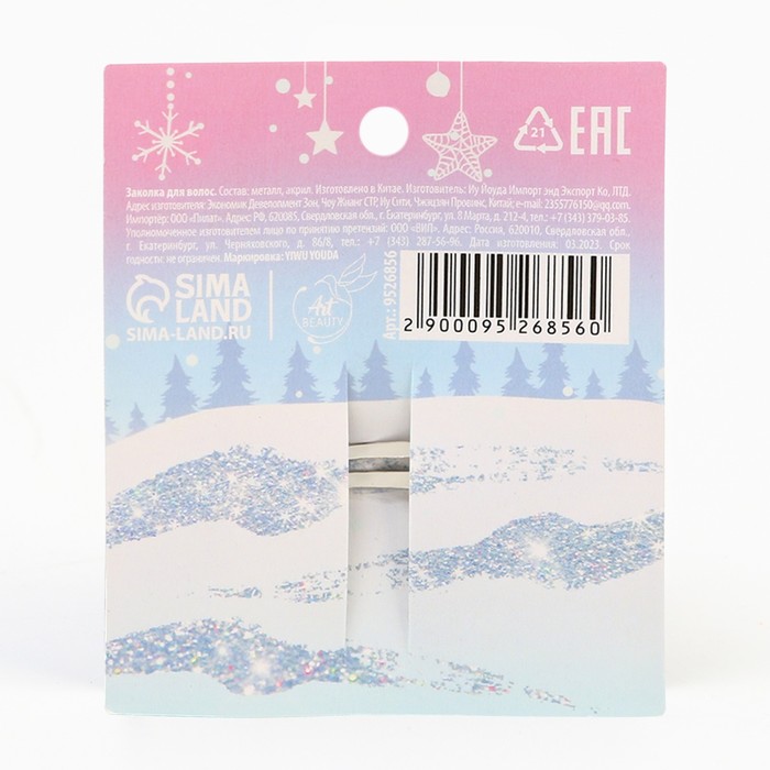 Заколка для волос новогодняя «Чудесной девочке», 15 х 5 см