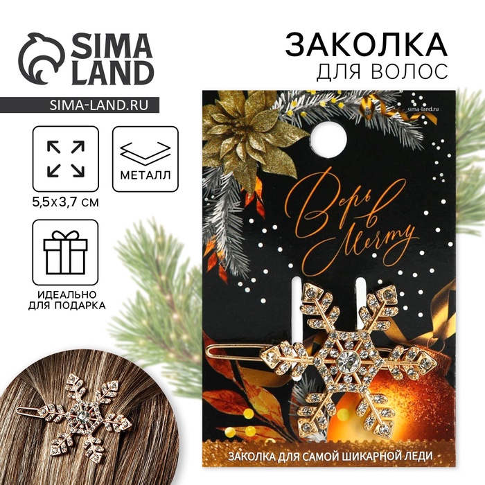 Стильная заколка для волос в форме снежинки. Такой зажим подойдет для создания детских причесок для подростков и детей, а также пригодится для элегантной укладки женщинам и девушкам. Заколка будет шикарно смотреться как на детских, так и на взрослых волосах. Наши оригинальные аксессуары для волос дополнят любой женский образ и наряд. Используйте их для прически на выпускной в саду или школе вашей дочки. Украсьте свои блестящие локоны необычной и модной бижутерией, такой декор для волос понравится всем. Преподнесите подарочный аксессуар любимой дочери, сестре или подруге.