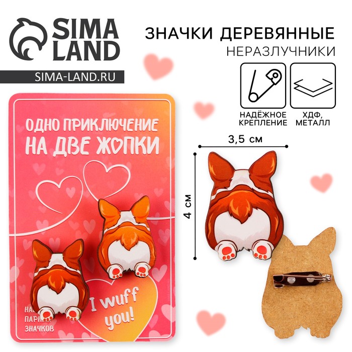 Значки деревянные, неразлучники «Одно приключение», 2 шт., 8?12 см.