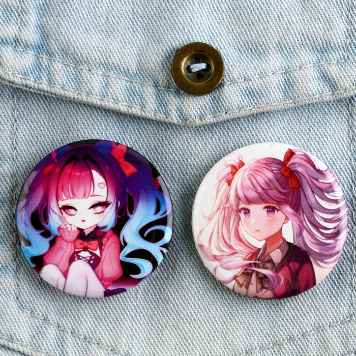 Значки закатные «Аниме девочки», 38 мм, МИКС