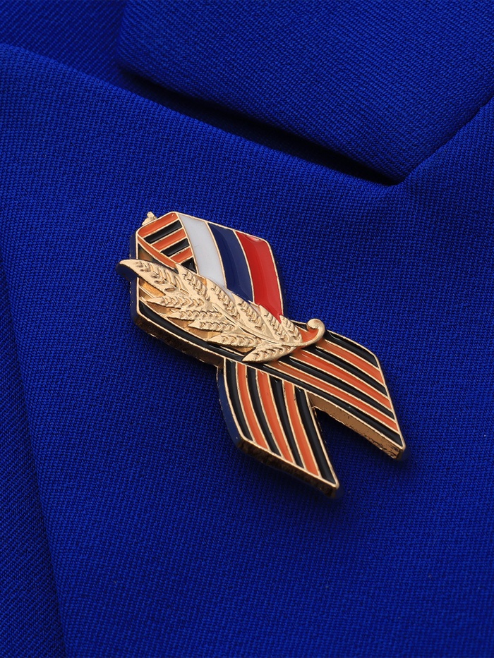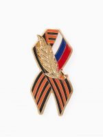Значок «Георгиевская лента» с флагом России, цветной в золоте