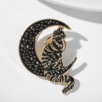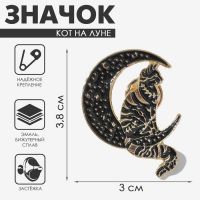 Значок «Кот на Луне», цвет чёрный в золоте