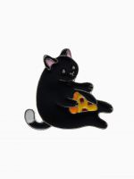 Этот забавный значок с изображением кота, держащего аппетитный кусочек пиццы, добавит яркости и игривости в любой образ. Изящный серебристый оттенок фурнитуры гармонично сочетается с насыщенными цветами эмали — чёрным, жёлтым, оранжевым и красным, создавая стильный и выразительный аксессуар.