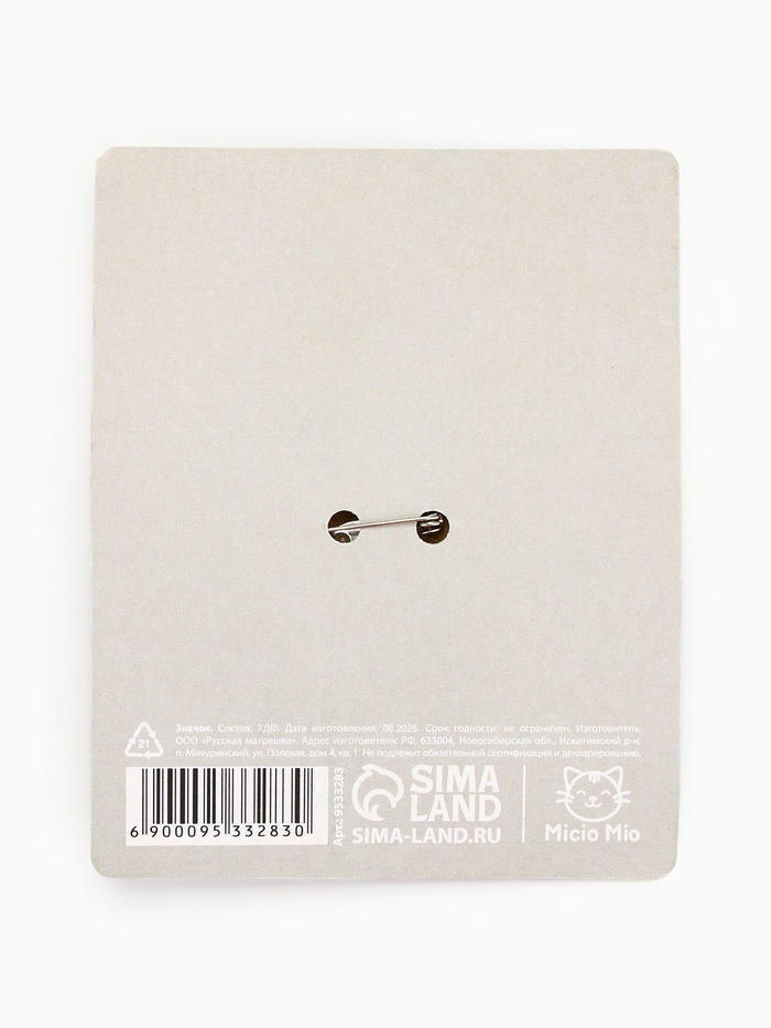 Значок - пин лёгкий и не оттягивает изделие. Рисунок нанесен с помощью УФ-печати, благодаря этому значок имеет четкое изображение и глянцевую поверхность. Значок устойчив к царапинам, не выгорает на солнце. Крепление значка - булавка.